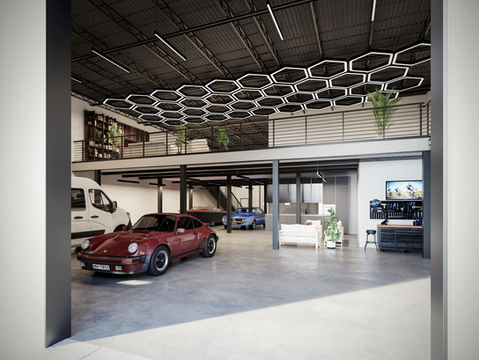 Every garage condo comes with its own HVAC system, separate electric meter and panel with 110v outlets pre-installed, 5” thick concrete floor, 12’ wide by 14’ tall overhead door, 3’ wide pedestrian door, fire sprinkler system, access to water/sewer, liner panels up to 8’ on exterior walls and taped and floated sheetrock on interior walls.